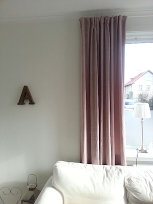 Äntligen fick jag tag på sammetsgardinerna jag var ute efter. Men jag ser här att jag måste dra ut gardinstången och breda ut gardinen lite.